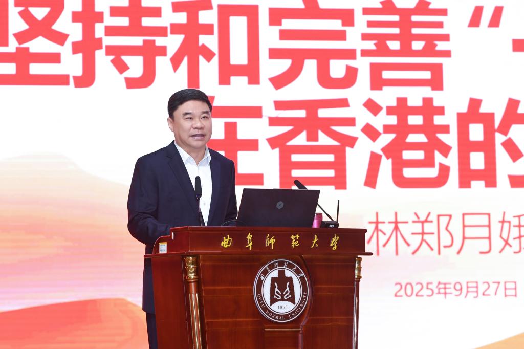 邢光在主持时表示,林郑月娥女士的演讲高屋建瓴、内涵丰富、深入浅出,既有对历史经验的深刻总结,也有对现实问题的精准把握,更有对未来发展的远见卓识。这不仅是一场高水平的政策解读,更是一次深刻的爱国主义教育大课。