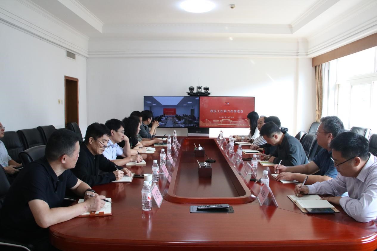 校庆工作办公室讯 10月9日,学校召开校庆工作第六次推进会。校党委副书记李志红,校党委常委,宣传部部长孙祥广参加会议。