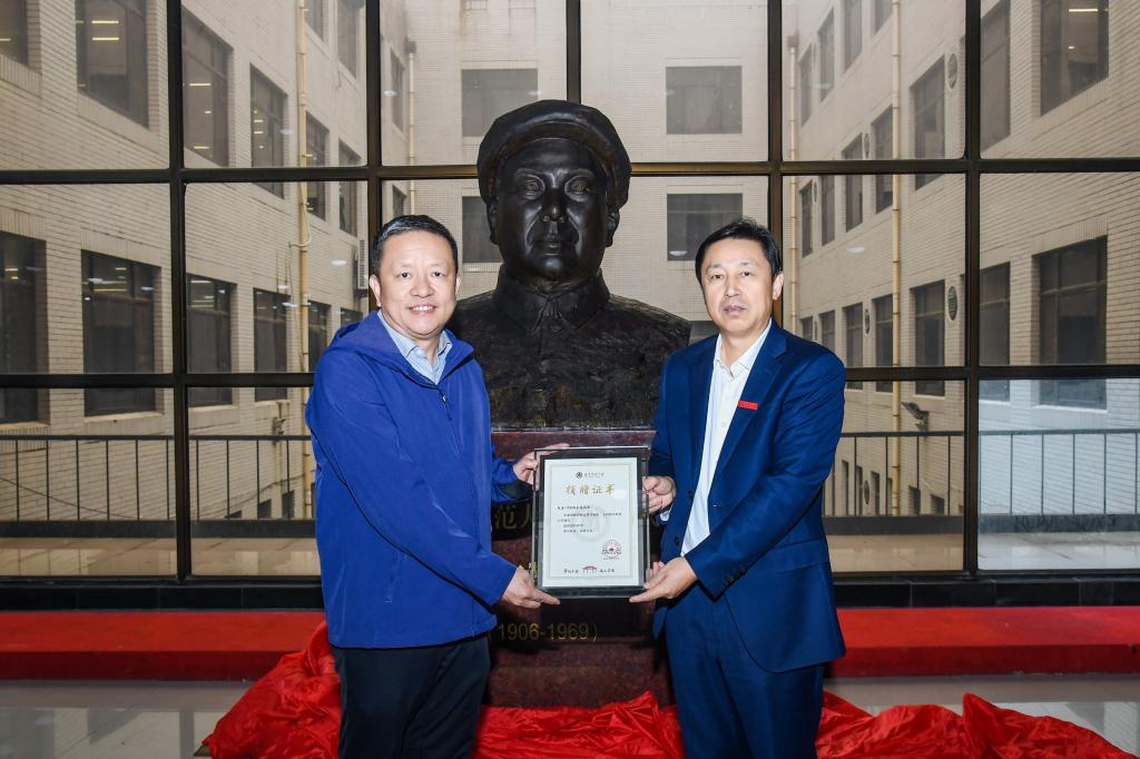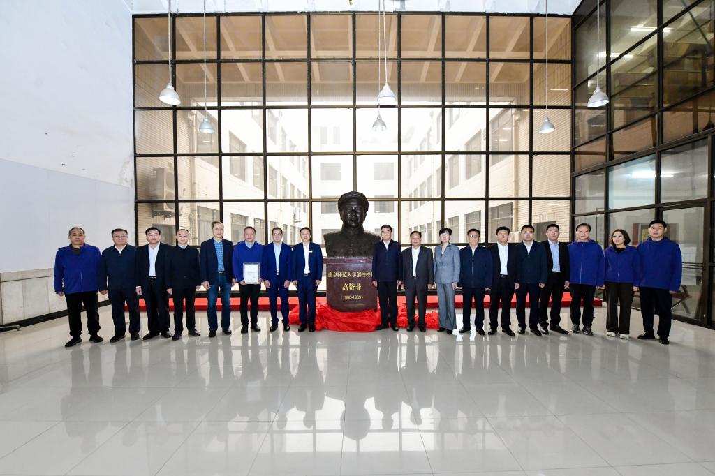 在全体与会人员饱含敬意的目光注视下,覆盖于塑像上的红色绸布徐徐揭开,高赞非老校长的半身塑像庄严呈现。塑像神态睿智、气韵深沉,令人生发无限追思与敬仰之情。
