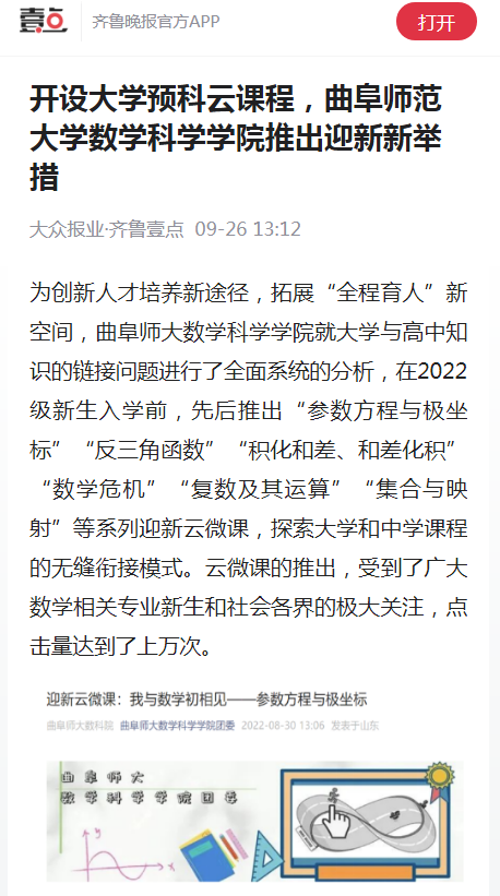 【齐鲁壹点】开设大学预科云课程,乐鱼(中国)数学科学学院推出迎新新举措