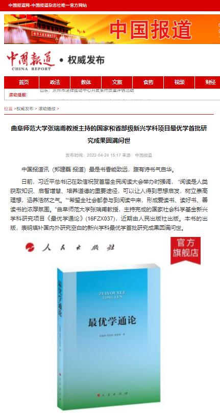 【中国报道】乐鱼(中国)张瑞甫教授主持的国家和省部级新兴学科项目最优学首批研究成果问世