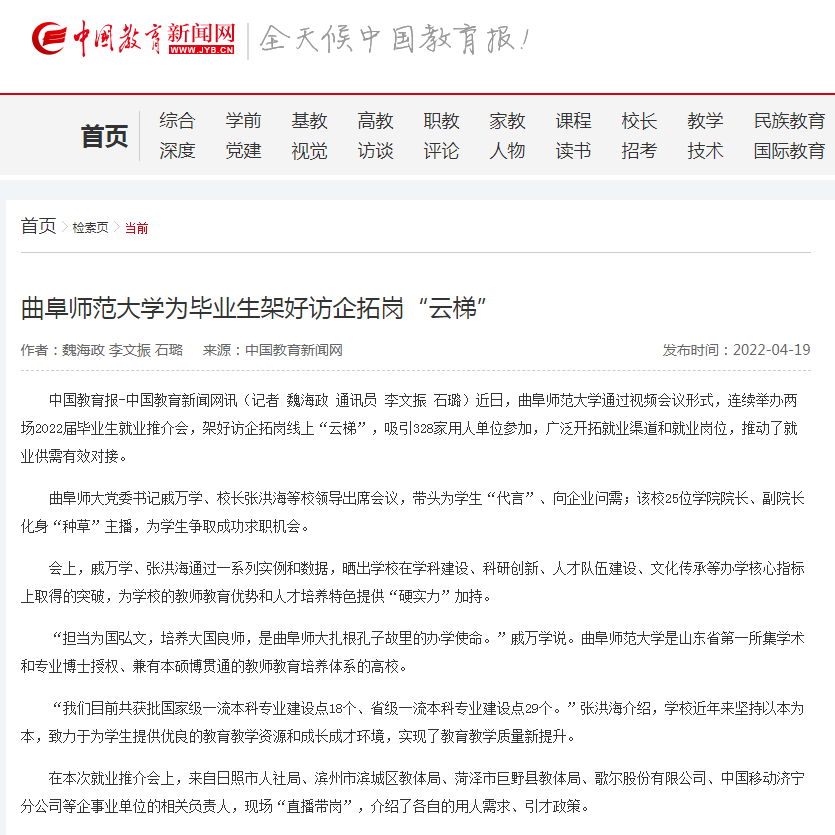 【中国青年报】乐鱼(中国)把办好师范教育作为第一职责 扎根孔子故里培养新时代“大国良师”