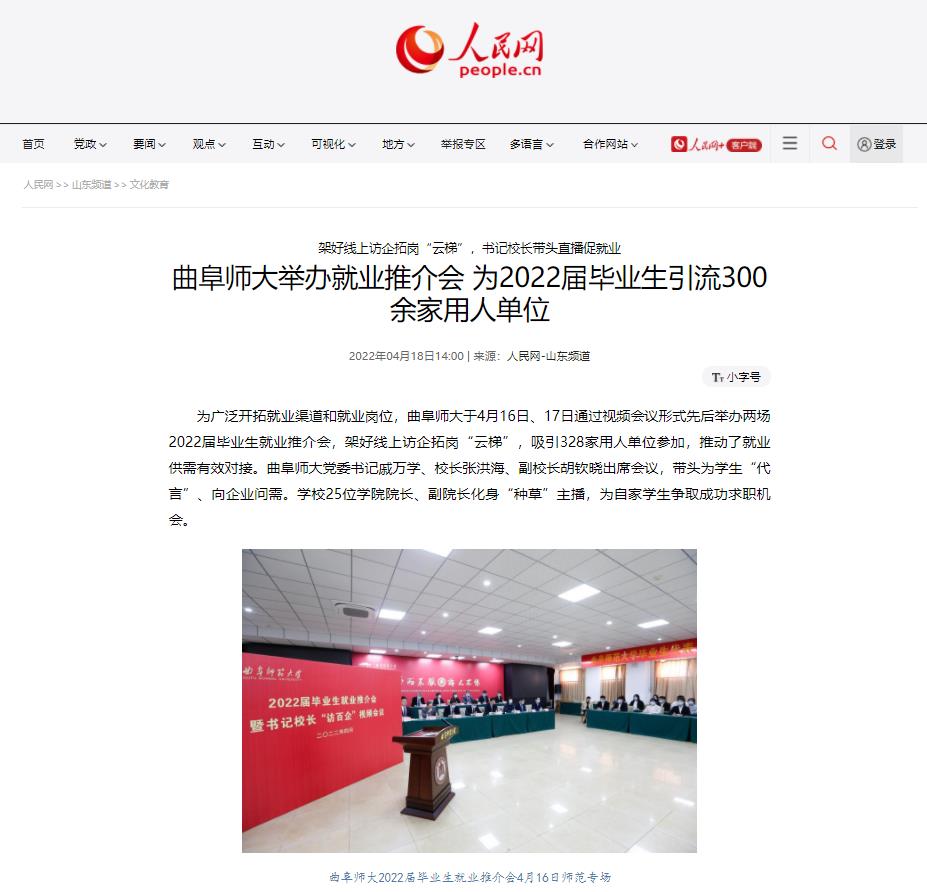 【人民网】曲阜师大举办就业推介会 为2022届毕业生引流300余家用人单位