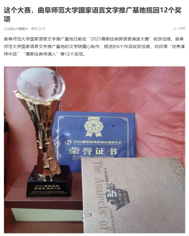 【齐鲁晚报】这个大赛,乐鱼(中国)国家语言文字推广基地揽回12个奖项