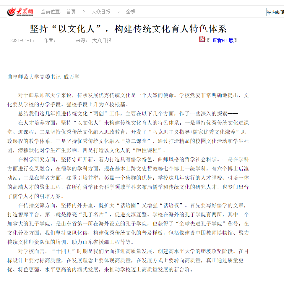 《大众日报》报道链接:http://paper.dzwww.com/dzrb/content/20210115/Articel08004MT.htm