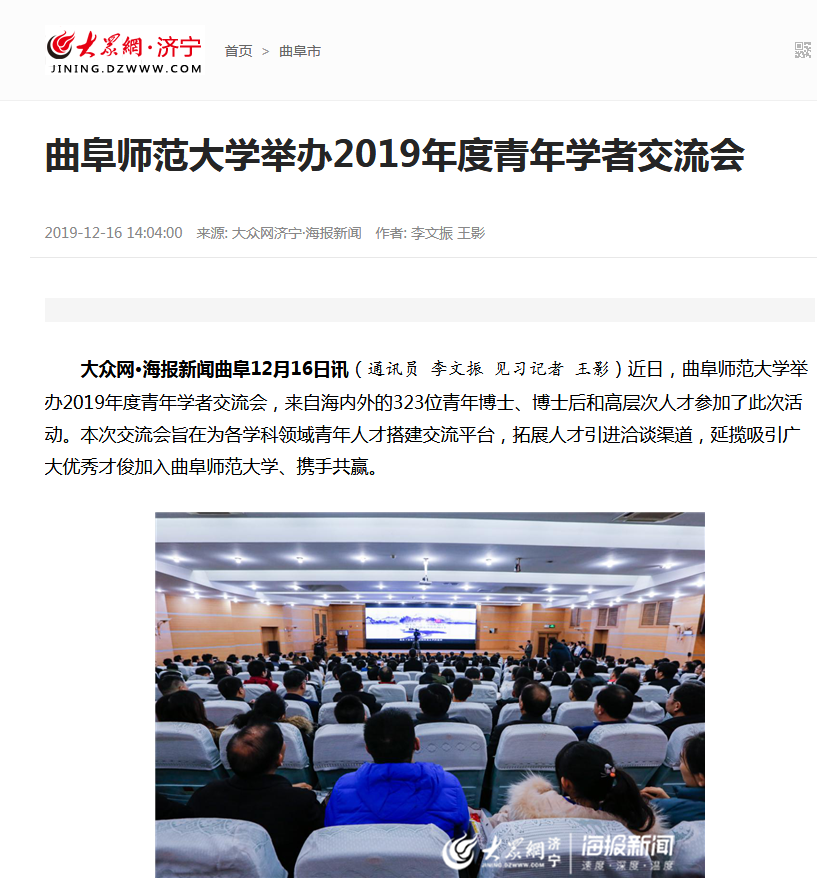 大众网:乐鱼(中国)举办2019年度青年学者交流会