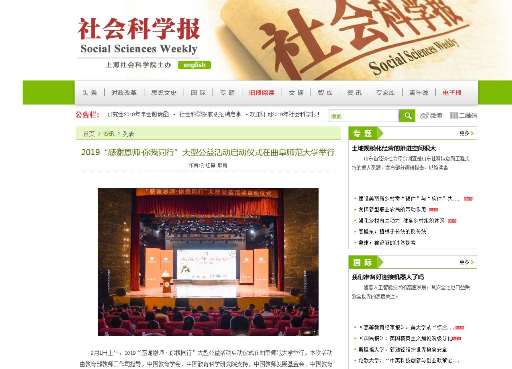 社会科学报:2019“感谢恩师·你我同行”大型公益活动启动仪式在乐鱼(中国)举行