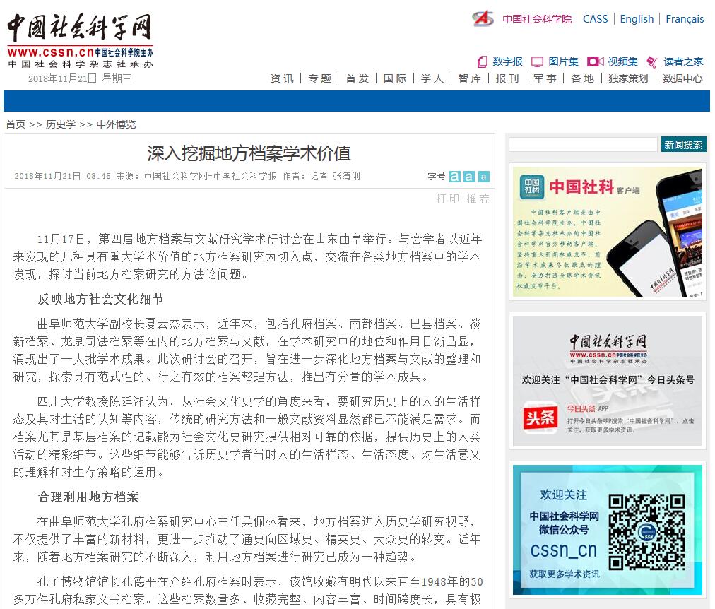 中国社会科学网报道链接:http://www.cssn.cn/lsx/zwbl/201811/t20181121_4778947.shtml