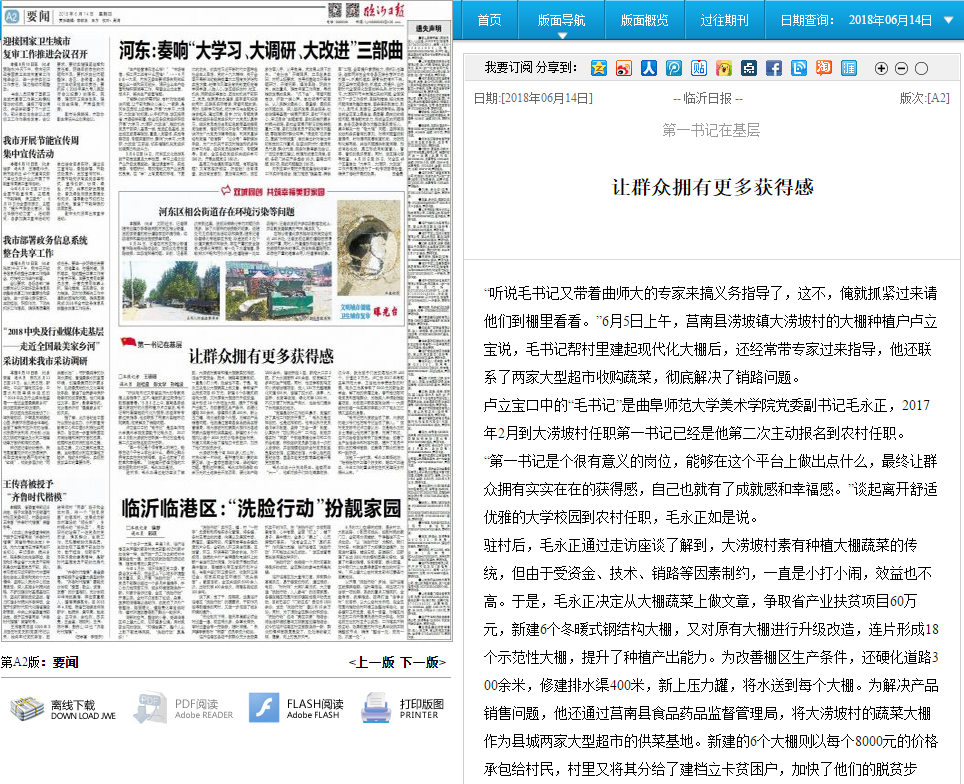 《临沂日报》报道链接http://epaper.langya.cn/shtml/linyrb/20180614/287332.shtml