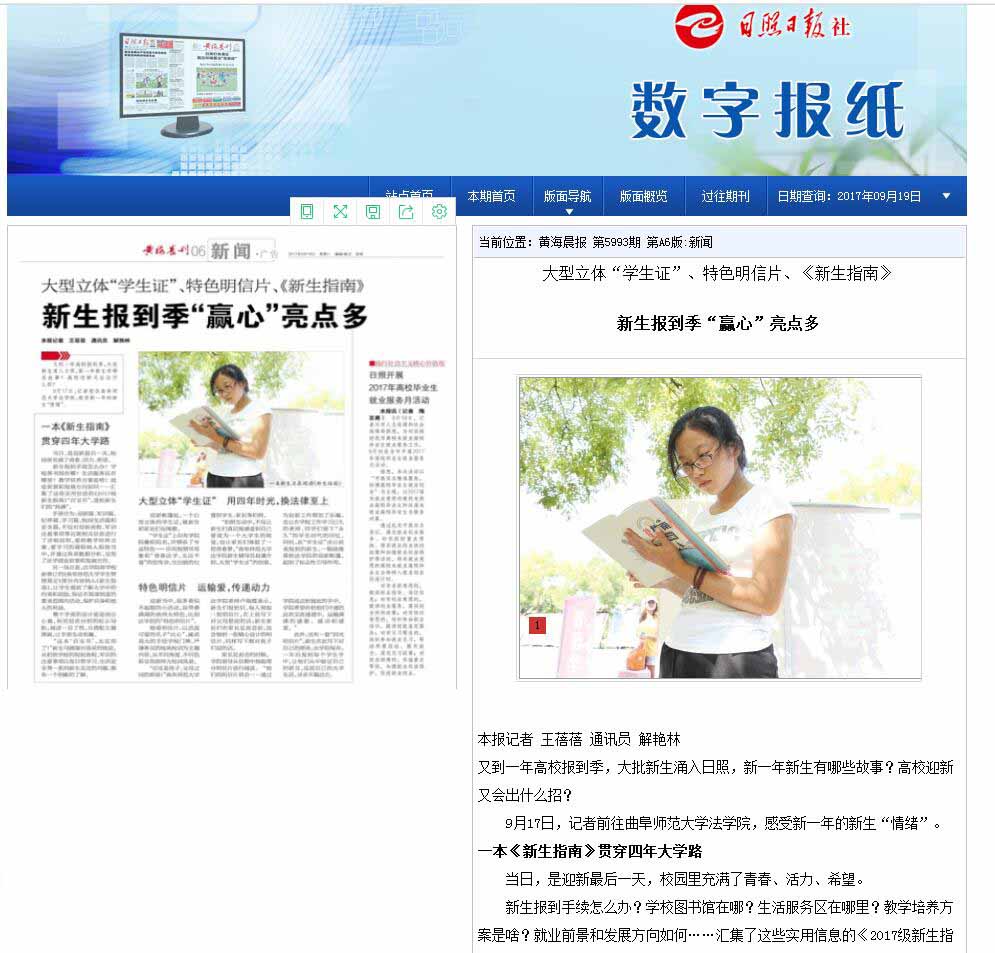 黄海晨报:曲师大新生报到季“赢心”亮点多