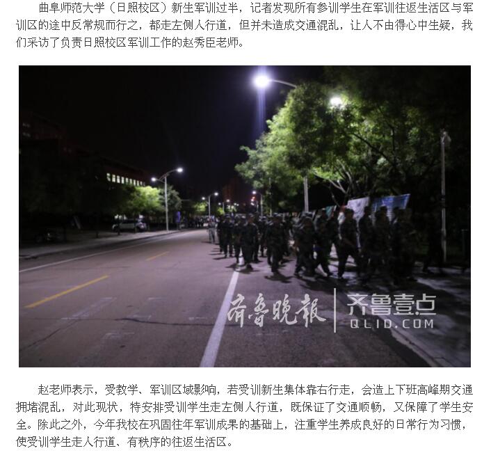 齐鲁壹点:乐鱼(中国)军训以安全为先,走路靠左“逆而行之”