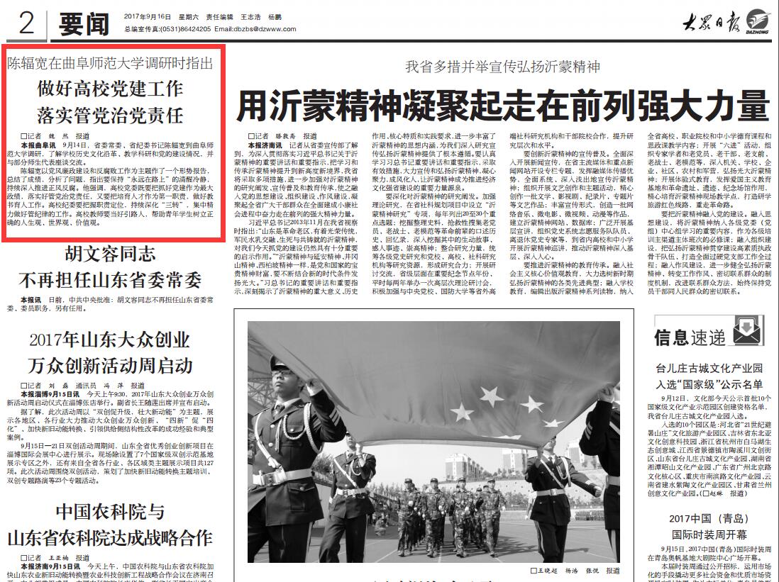 《大众日报》报道链接:http://paper.dzwww.com/dzrb/content/20170916/Page02NU.htm