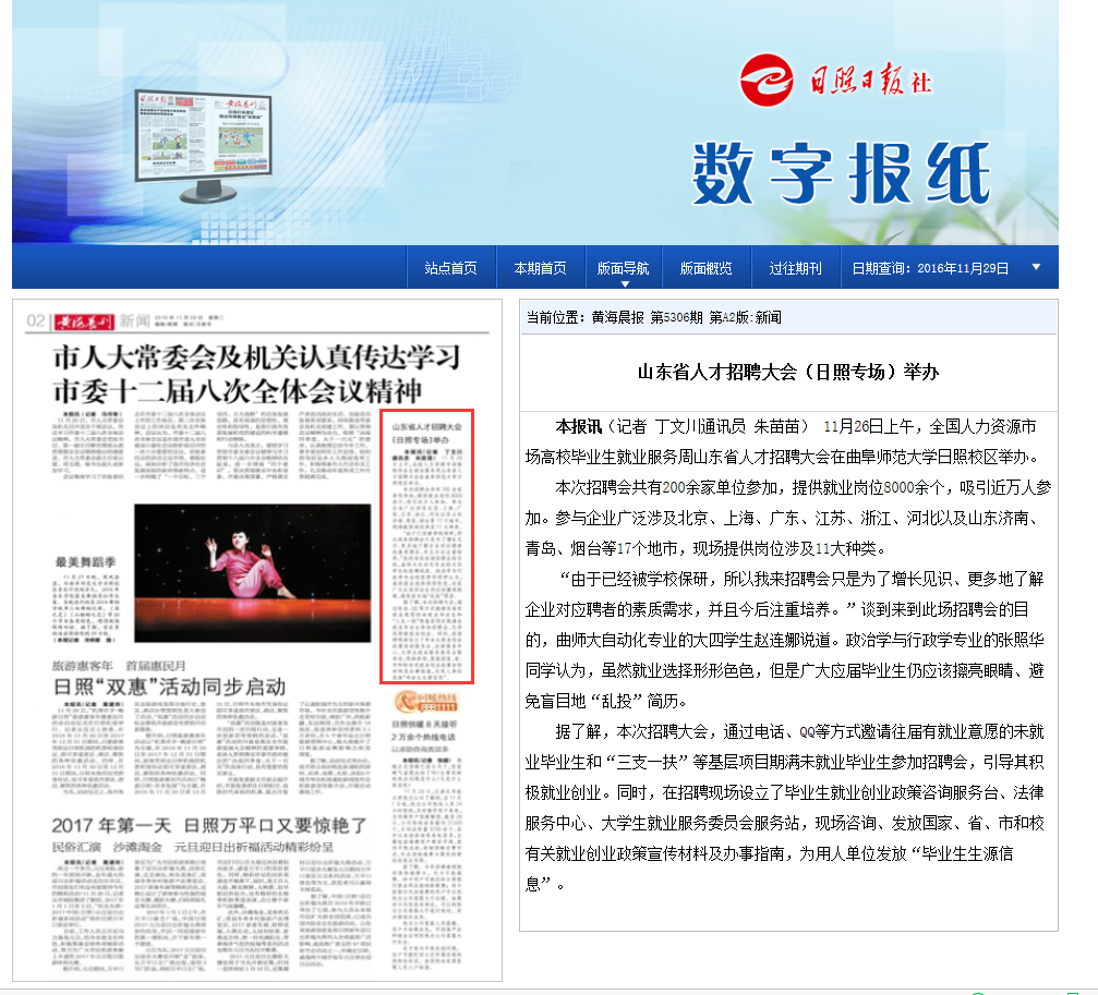 黄海晨报:曲师大举办山东省人才招聘大会(日照专场)