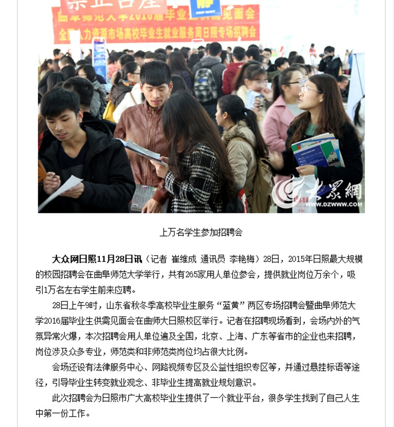 日照电视台、大众网、日照网:乐鱼(中国)校园招聘会提供上万岗位 “北上广”来抢人