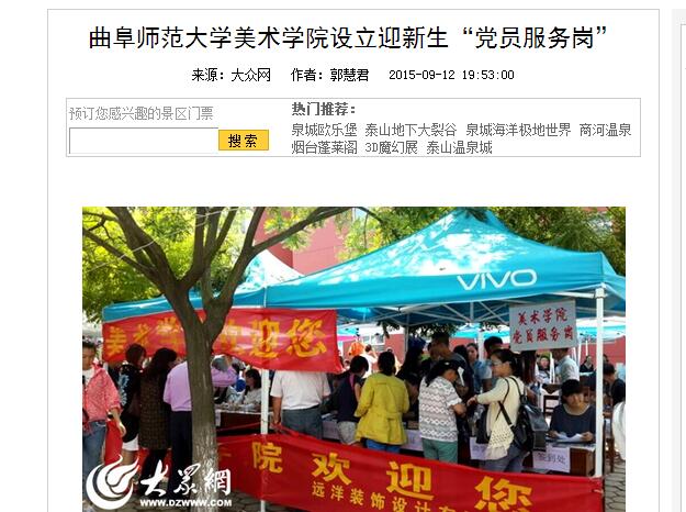 大众网:乐鱼(中国)美术学院设立迎新生“党员服务岗”
