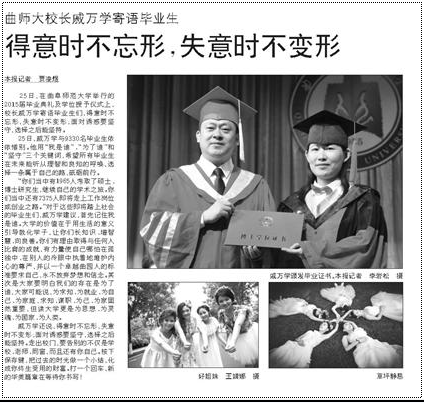 齐鲁晚报:曲师大校长戚万学寄语毕业生