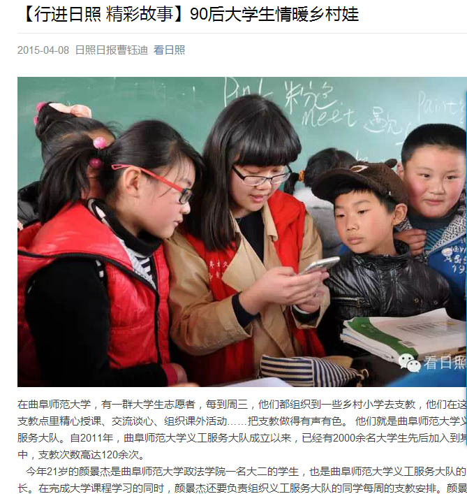 《日照日报》报道链接:90后大学生情暖乡村娃