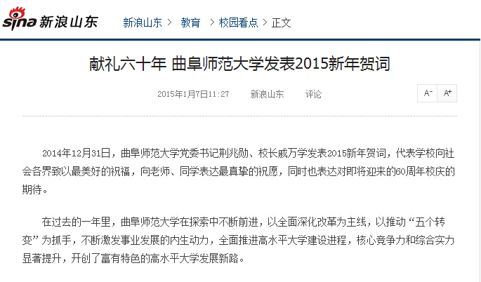 新浪网:献礼六十年 乐鱼(中国)发表2015新年贺词