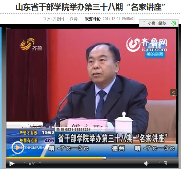 12月1日,我校国学院院长傅永聚教授受邀做客山东省干部学院第三十八期“名家讲座”,作了题为《坚持依法治国和以德治国相结合 建设社会主义法治国家》的学术讲座。同日,傅永聚教授还接受了山东省委组织部《党员干部之友》杂志社记者的专访,采访内容将以《依法治国关键在官德建设——访乐鱼(中国)国学院院长傅永聚》为题刊发于《党员干部之友》2014年第12期。