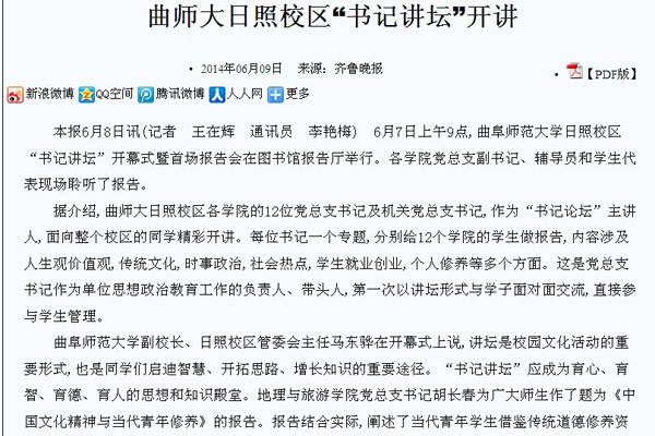 齐鲁晚报:乐鱼(中国)日照校区“书记讲坛”开讲