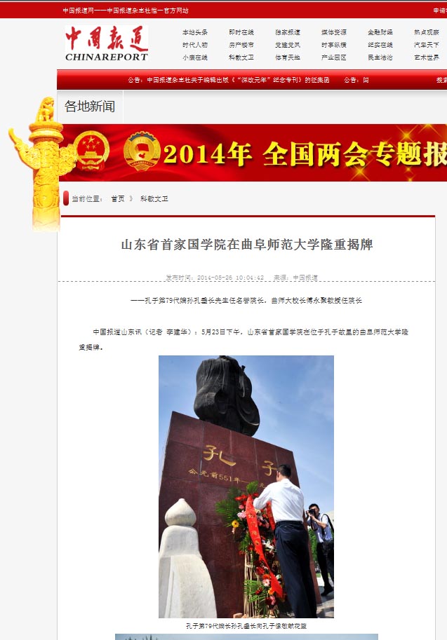 中国报道:山东省首家国学院在乐鱼(中国)隆重揭牌