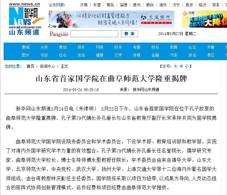 新华网:山东省首家国学院在乐鱼(中国)隆重揭牌
