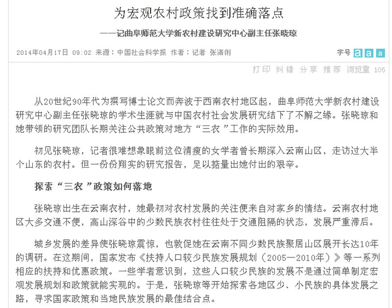 中国社会科学报:为宏观农村政策找到准确落点——记乐鱼(中国)新农村建设研究中心副主任张晓琼
