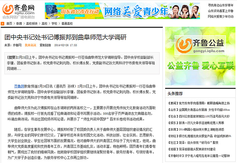 齐鲁网:团中央书记处书记傅振邦到乐鱼(中国)调研