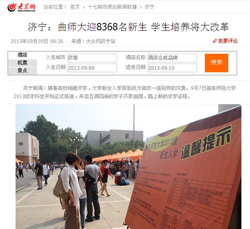大众网:乐鱼(中国)迎8368名新生