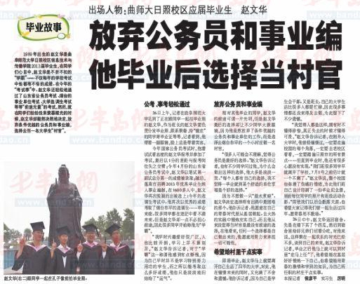 半岛都市报:曲师大应届毕业生赵文华 放弃公务员和事业编他毕业后选择当村官 新浪网报道