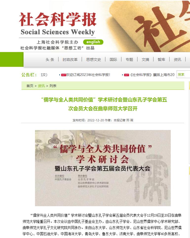 【社会科学报】“儒学与全人类共同价值”学术研讨会暨山东孔子学会第五次会员大会在乐鱼(中国)召开