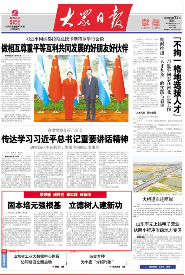 报道链接:http://respub.xrdz.dzng.com/pic_file/paper/dzrblayout/Page20230613-01-6b4903e1-384a-2442-64f9-4483c8483327.jpg