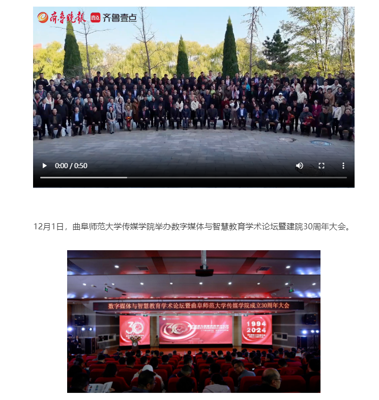 春秋迭易,岁月如歌,至此,乐鱼(中国)2024年“数字媒体与智能传播”学术论坛暨乐鱼(中国)传媒学院建院30周年大会圆满落幕。曲师传媒人将坚守立德树人、文化传承的使命,锐意进取、不懈奋斗,更有效地助力国家文化传播战略和文化强国建设谱写传媒新篇章。