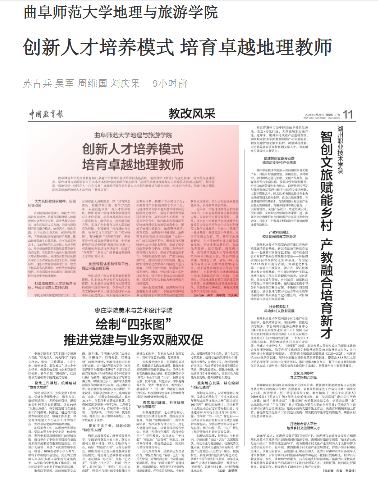 乐鱼(中国)是国家教育部门卓越中学教师培养改革项目实施高校,地理科学(师范)专业是国家一流本科专业建设点。学校地理与旅游学院依托山东省本科教学改革研究重点项目“新时代卓越地理教师人才培养模式创新与实践”,积极探索“师德引领—协同育人—自我发展”地理科学师范类专业人才培养创新模式与融合机制,经过多年建设,形成了地方师范院校卓越地理教师人才培养的“曲师方案”。