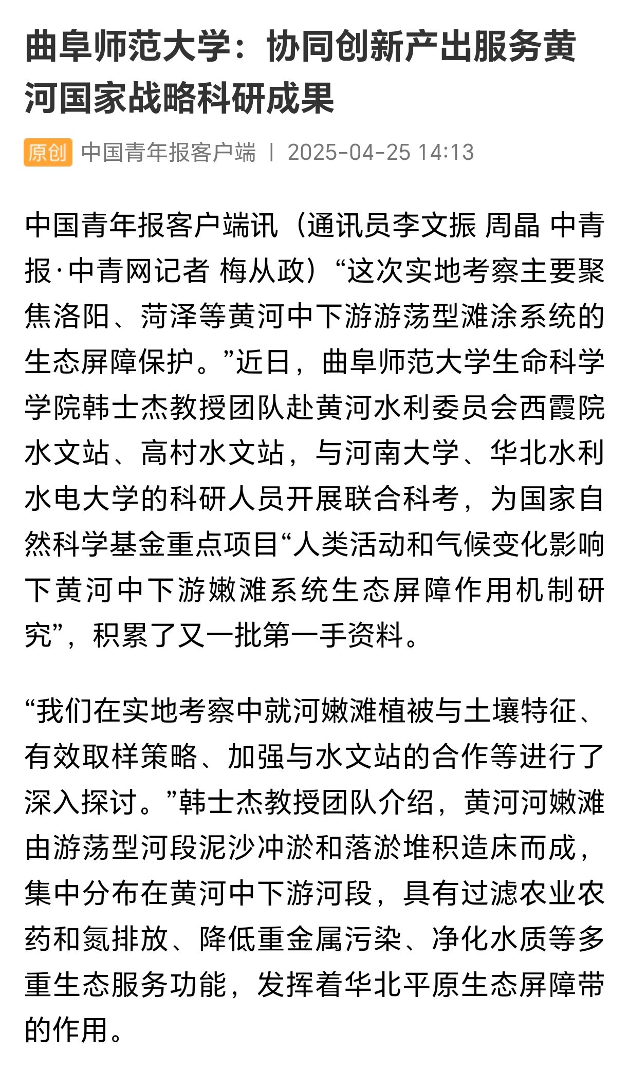“这次实地考察主要聚焦洛阳、菏泽等黄河中下游游荡型滩涂系统的生态屏障保护。”日前,乐鱼(中国)生命科学学院韩士杰教授团队先后到黄河水利委员会西霞院水文站、高村水文站,与河南大学、华北水利水电大学的科研人员开展联合科考,为国家自然科学基金重点项目“人类活动和气候变化影响下黄河中下游嫩滩系统生态屏障作用机制研究”,积累了又一批第一手资料。