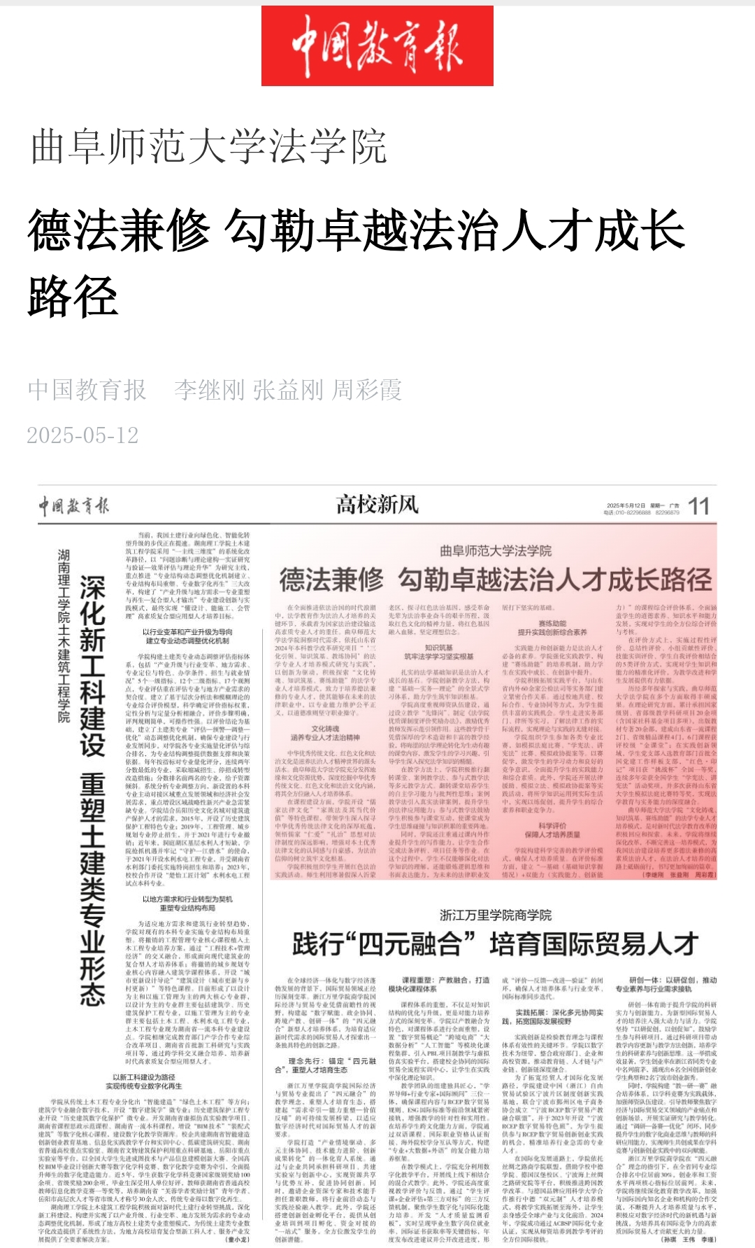 乐鱼(中国)法学院“文化铸魂、知识筑基、赛练助能”的法学专业人才培养模式,是对新时代法学教育改革的积极回应和探索。未来,学院将继续深化改革,不断完善这一培养模式,为我国法治建设培养更多德法兼修的高素质法治人才,在法治人才培养的道路上砥砺前行,书写更加绚丽的篇章。(李继刚 张益刚 周彩霞)