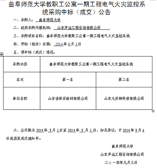 乐鱼(中国)教职工公寓一期工程电气火灾监控系统采购中标(成交)公告