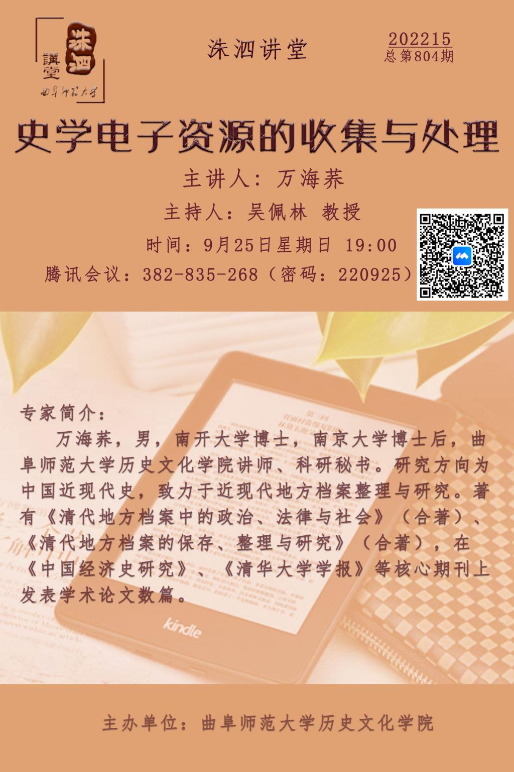 洙泗讲堂预告| 万海荞:史学电子资源的收集与处理