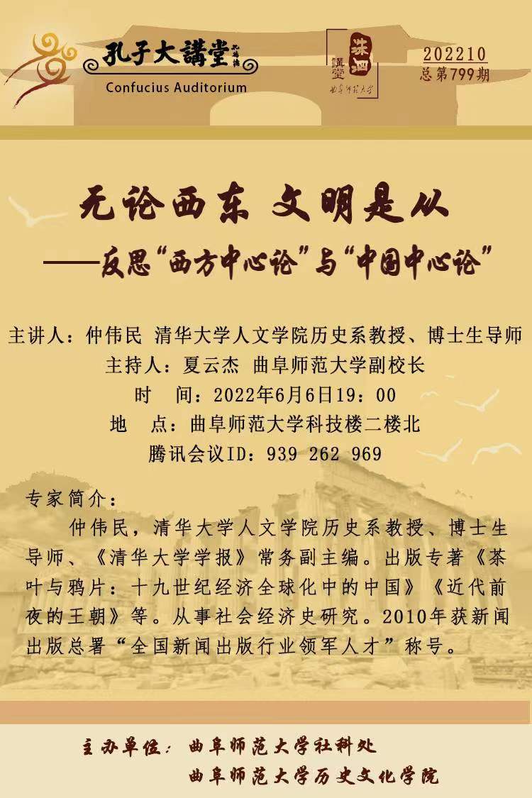 孔子大讲堂预告| 仲伟民:无论西东 文明是从——反思“西方中心论”与“中国中心论”