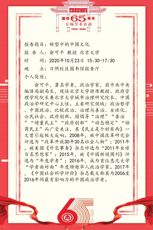 建校65周年百场学术活动-北京大学俞可平教授
