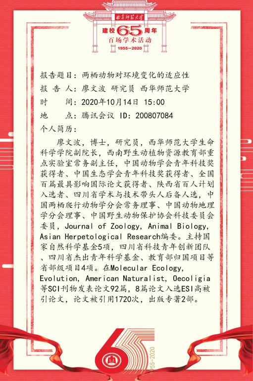 建校65周年百场学术活动—西华师范大学廖文波研究员