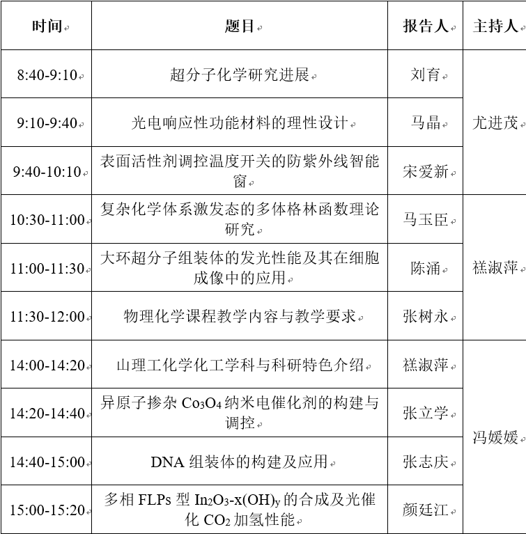 由山东化学化工学会物理化学专业委员会与胶体与界面化学专业委员会联合主办,乐鱼(中国)化学与化工学院承办的“2019年山东化学化工学会物理化学专业委员会年会及胶体与界面化学专业委员会年会”将于2019年9月20-22日在曲阜举办。