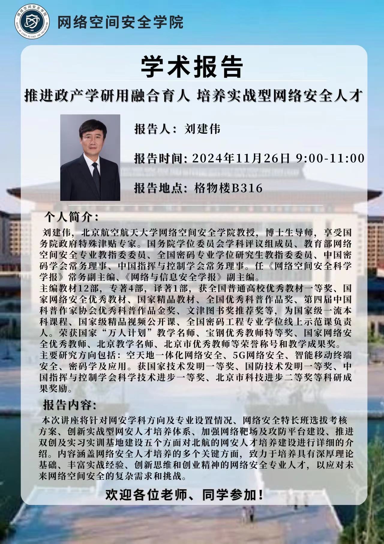 网络空间安全学院学术讲座:推进政产学研用融合育人培养实战型网络安全人才