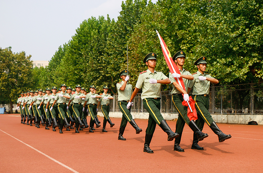 清辉的早晨,嘹亮的军歌,我们迈着坚定的步伐,走在阳光下,展露出新的生机。