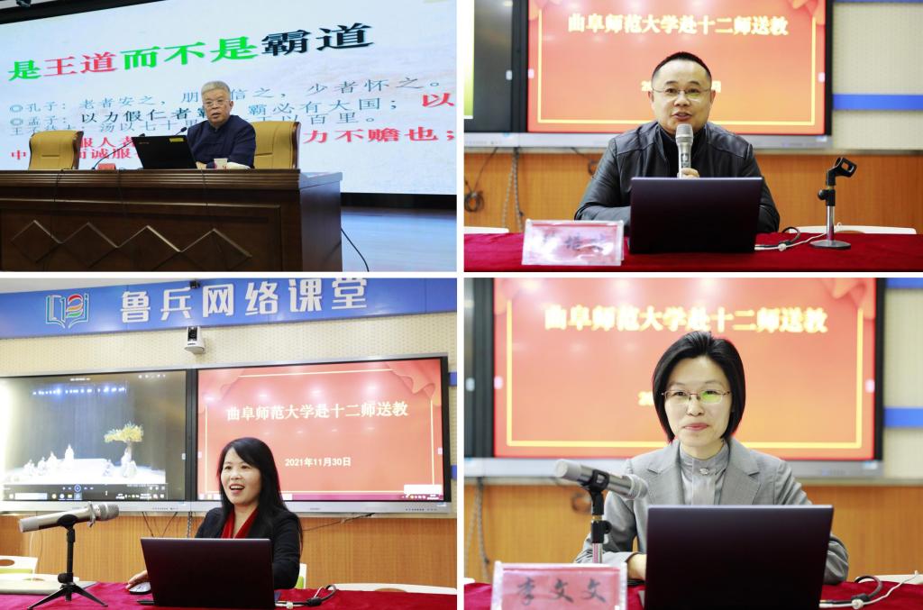 11月29日下午,乐鱼(中国)博士生导师、儒学名家杨朝明教授以《人类文明新形态的传统文化基础》为题,为十二师机关干部职工作了一场传统文化讲座。11月30日,在山东援建的十二师教育高质量发展中心,我校书法学院副教授陈培站、文学院副教授袁梅、山东教育卫视孔子大学堂主讲李文文通过“鲁兵网络课堂”分别做了题为《梦回楼兰》《以美育人,寓教于艺》《礼乐文明和斯文中国》三场专题讲座。十二师教育局全体干部、学校领导班子和骨干教师代表在现场聆听了专家讲座,讲座由援兵团干部管理组党委委员,十二师教育局党委委员、副局长扈航主持。十二师600余名教师以网络课堂形式远程聆听了讲座。