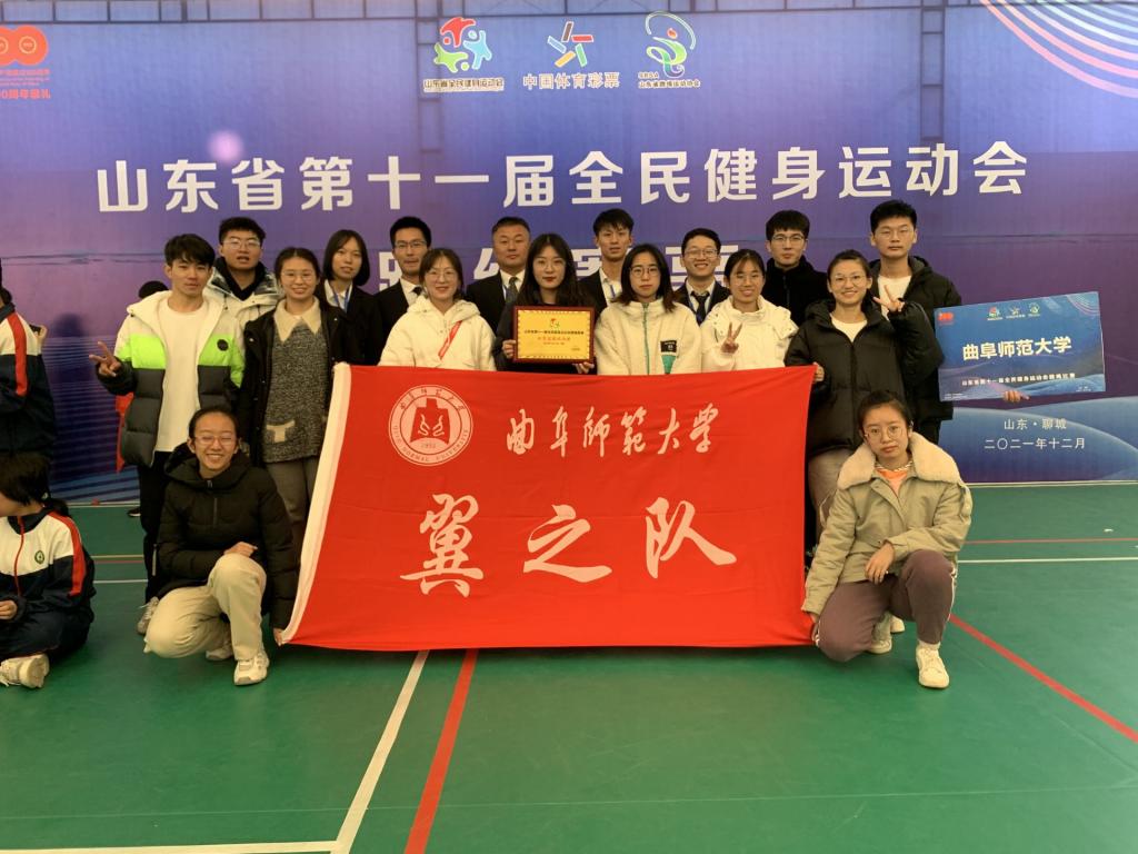曲阜师大新闻中心讯 12月4日—5日,山东省第十一届全民健身运动会跳绳比赛在聊城市空体中心举行。乐鱼(中国)派出由体育教学部副主任李思民任领队、伊士礼老师任教练员、14名运动员组成的队伍参加了此次比赛。队员们经过顽强拼搏,共斩获8项冠军、14项亚军、2项季军以及体育道德风尚奖等优异成绩。其中男子组4X30″单摇接力成绩为716次、3分钟单摇跳成绩为984次、30秒单摇跳成绩为198次;女子组3分钟单摇跳成绩为746次;女子组两人同步花样、混合组车轮跳等项目也取得了优异成绩。