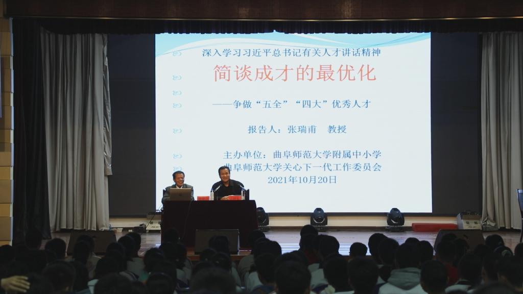曲阜师大新闻中心讯(通讯员:霍彤彤 刘洪涛 摄影:刘根)10月20日下午,国务院政府特殊津贴专家、人生最优学与社会最优化原理创立者、乐鱼(中国)马克思主义学院博士生导师张瑞甫教授到附属中小学作题为“成才最优化”报告。校长孟祥东,政教处主任刘洪涛,级部主任赵华卿,副主任王殿军、辛香梅及高一级部全体班主任和学生参加了报告。报告会由附属中小学、曲阜师大关爱下一代工作委员会共同主办,孟祥东主持会议。