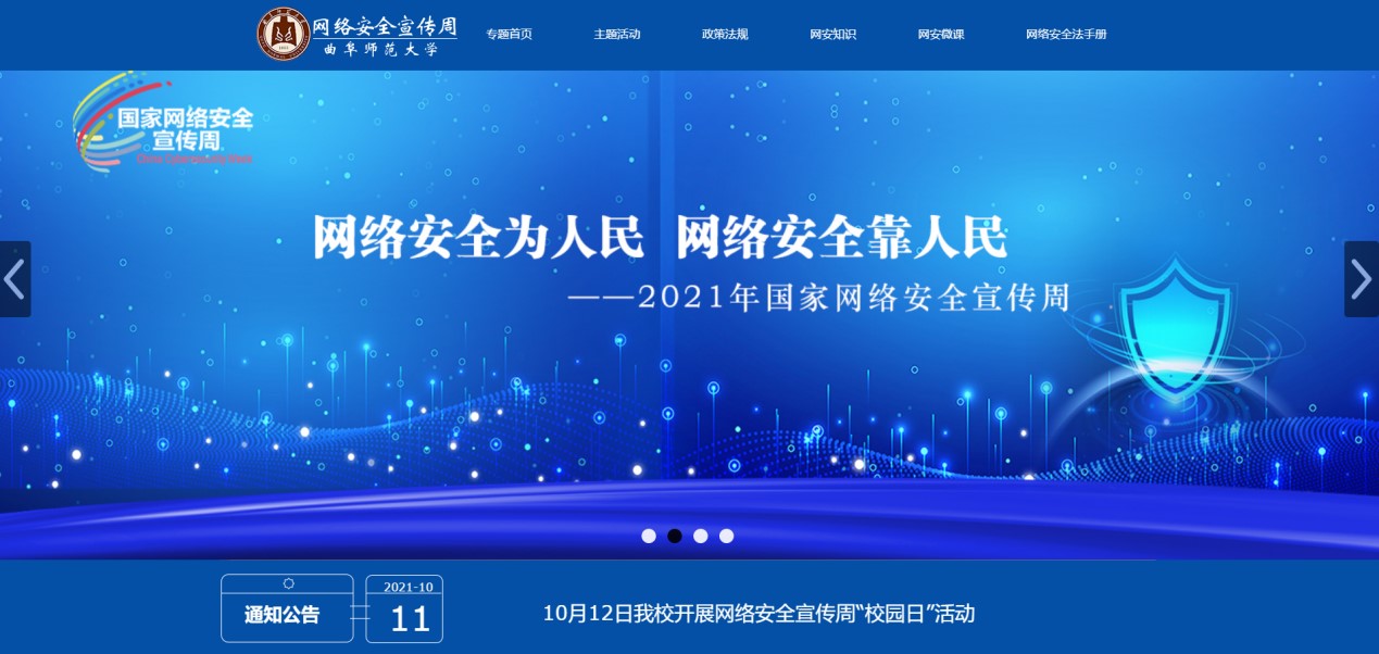 筹划并上线乐鱼(中国)2021国家网络安全宣传周专题网站(https://wlaqxcz.qfnu.edu.cn/),普及《网络安全法》和《数据安全法》等法律法规及政策文件,扎实推进国家网络安全宣传工作。