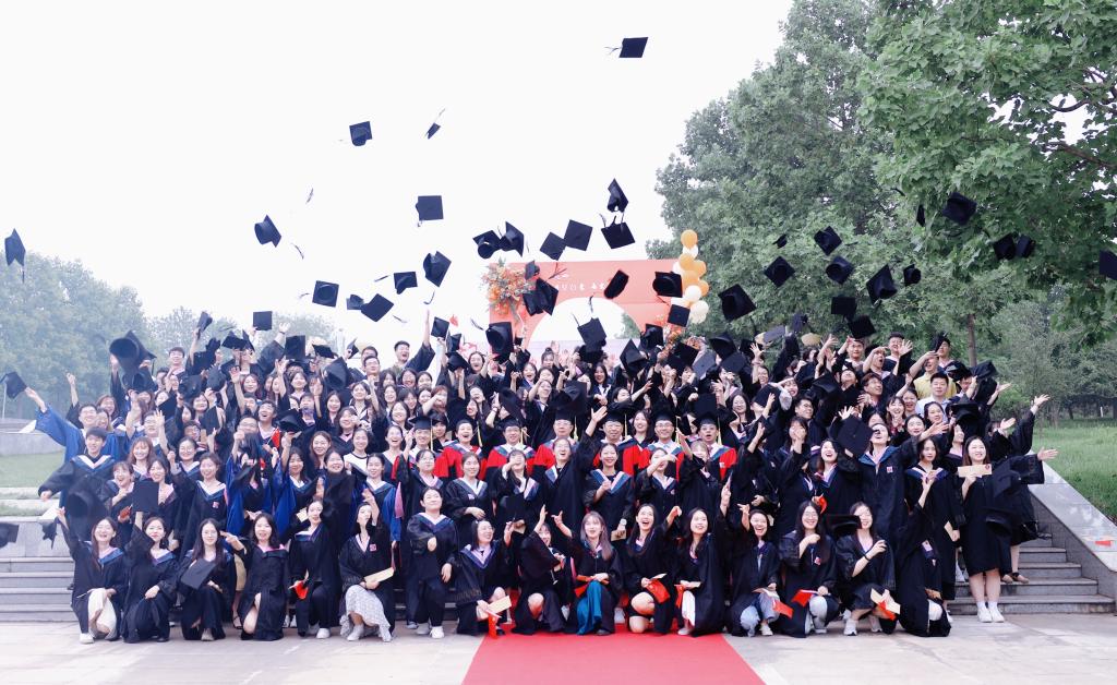加强联络,离别之情真挚动人。典礼还特意安排了校友联络员聘任仪式。院长张益刚为2021届毕业生11位校友联络员颁发了聘任证书,邹嘉祥同学作为校友联络员代表、姜慧作为全体毕业生代表,分别发言,表示会始终秉承 “学而不厌,诲人不倦”的校训精神,成为其精神的发扬者、传承者和实践者。伴随着全体师生满怀深情共同合唱校歌《犁牛之子》,典礼转入室外第二会场。