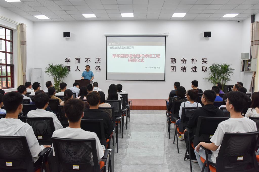 曲阜师大新闻中心讯(记者:刘萌)6月3日上午,曲阜师大举办宏福建设 集团有限公司捐赠建设仪式,党委常委、副校长冯冲,宏福建设集团有限公司副总经理兼鲁西南区域总经理胡军,中铁集团华东大区经理涂先超等出席活动,国内合作处、后勤管理处等单位负责人,师生代表等参加了活动。仪式由后勤管理处副处长祁世友主持。